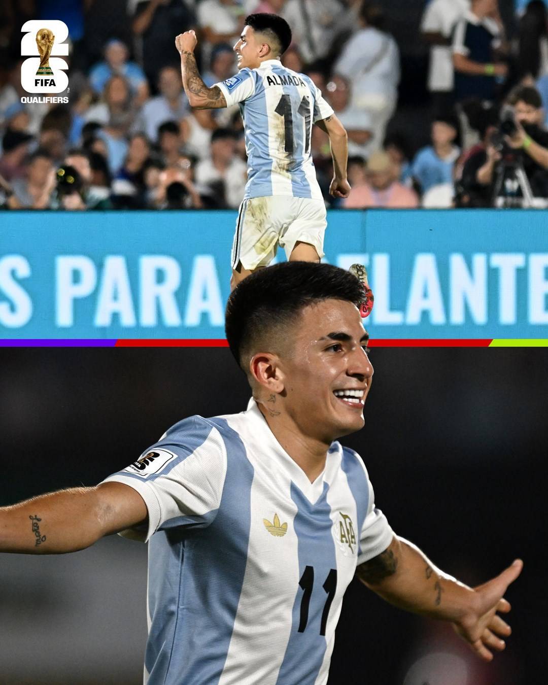 直播吧03月22日讯 世预赛南美区第13轮,阿根廷凭借阿尔马达的精彩世界波,1-0客胜乌拉圭,下轮对巴西不败即可晋级世界杯。在梅西、劳塔罗无法出战的情况下,阿尔马达首发出任左边锋,帮助球队取胜。23岁的阿尔马达今年租借里尔,3月16日刚收获法甲首球,近两场法甲1球2助,球员目前身价为2700万欧。阿...